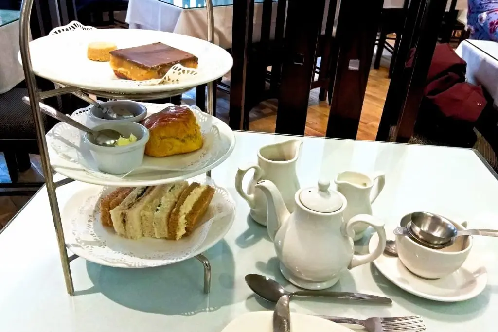 Afternoon Tea to nie jest zwykła popołudniowa herbatka. To coś w rodzaju wystawnego podwieczorku. Clue jest, rzecz jasna, herbata (choć kawa też wchodzi w grę), a do tego serwowane są kanapki, maślane bułeczki scones z gęstą śmietaną (clotted cream) i konfiturą oraz słodkości. Cudowna sprawa!