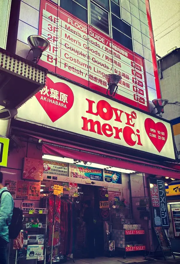 Wreszcie Akihabara to też zagłębie sklepów dla dorosłych, ale żadnych tam wstydliwie pochowanych w bramach sklepików, tylko wielopiętrowych sex shopów. Na czele z ośmiopiętrowym M’s: Pop Life sex department store. Tak, to jeden z najdziwniejszych sklepów w Tokio.