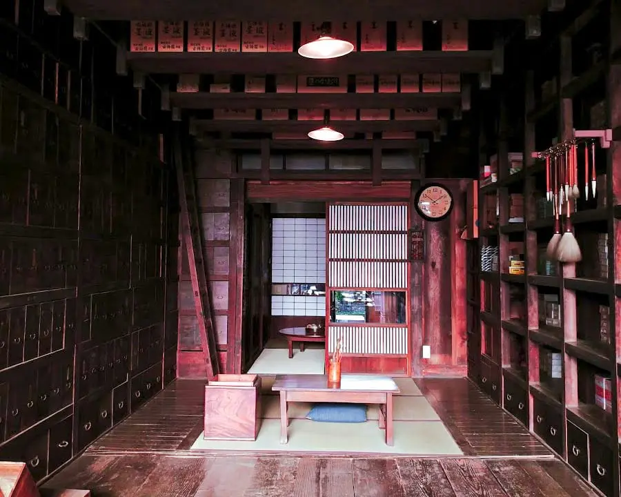 Już na dzień dobry zaskakuje różnorodność zgromadzonych (w większości oryginalnych) budynków. Poczynając od prostych drewnianych chałup ze słomianym dachem, paleniskiem na środku i klepiskiem zamiast podłogi, po wyłożoną kilometrami tatami rezydencję dygnitarza.