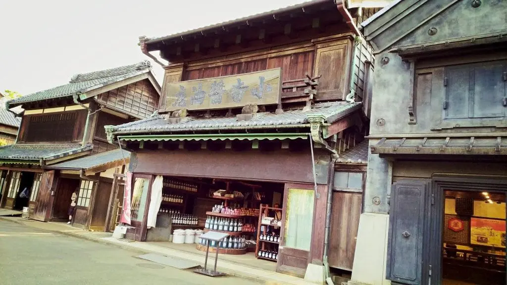 Osobną atrakcją jest zrekonstruowana uliczka handlowa z okresu Meiji: sklepy (m.in. kwiaciarnia, sklep papierniczy i z artykułami gospodarstwa domowego), przydrożny bar oraz łaźnia publiczna. Większość budynków zwiedza się również wewnątrz, ergo niemal bez przerwy chodzi się bez butów (ergo nie trudno złapać grzyba, więc bez skarpetek ani rusz). Do pokonania są też hurtowe ilości stromych i wąskich schodów.