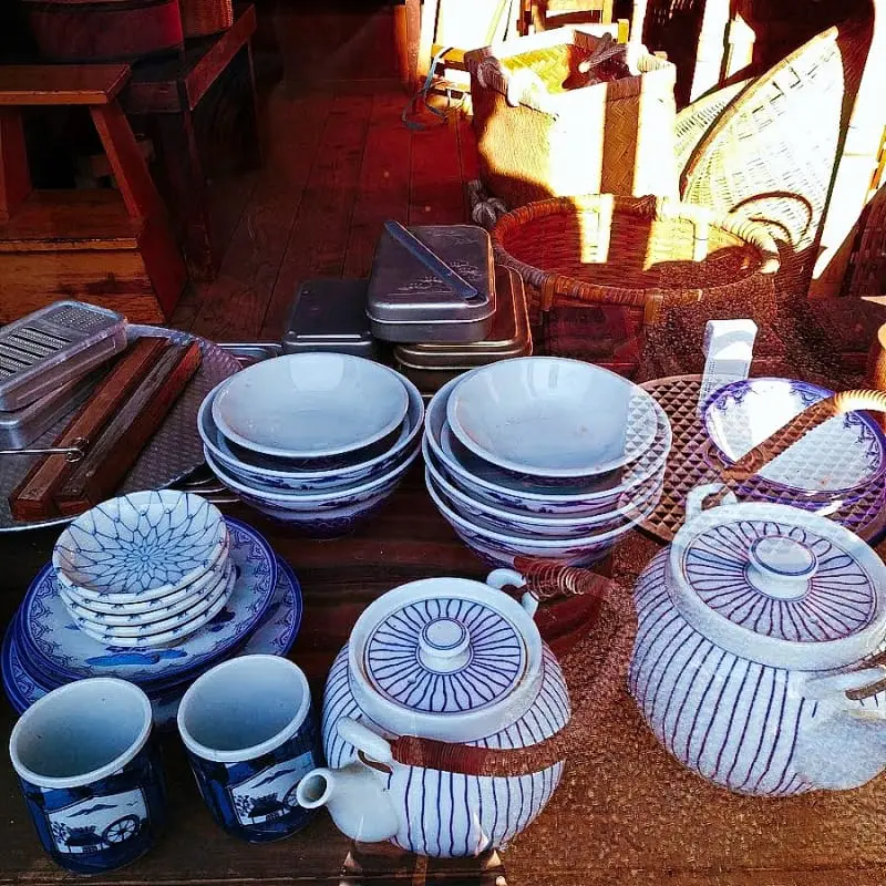 Osobną atrakcją jest zrekonstruowana uliczka handlowa z okresu Meiji: sklepy (m.in. kwiaciarnia, sklep papierniczy i z artykułami gospodarstwa domowego), przydrożny bar oraz łaźnia publiczna. Większość budynków zwiedza się również wewnątrz, ergo niemal bez przerwy chodzi się bez butów (ergo nie trudno złapać grzyba, więc bez skarpetek ani rusz). Do pokonania są też hurtowe ilości stromych i wąskich schodów.
