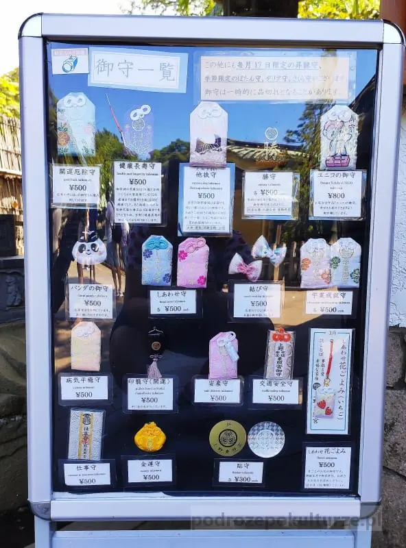 W ogóle chram Toshogu wie jak zmonetyzować turystów. W świątyni sprzedawane są amulety i talizmany przynoszące szczęście, czyli omamori. Powiecie, że omamori sprzedawane są też w innych świątyniach i to będzie prawda, ale nieczęsto zdarza się, że opisy dobrodziejstw przypisanych do talizmanu są opisane po angielsku. A w chramie Toshogu owszem!