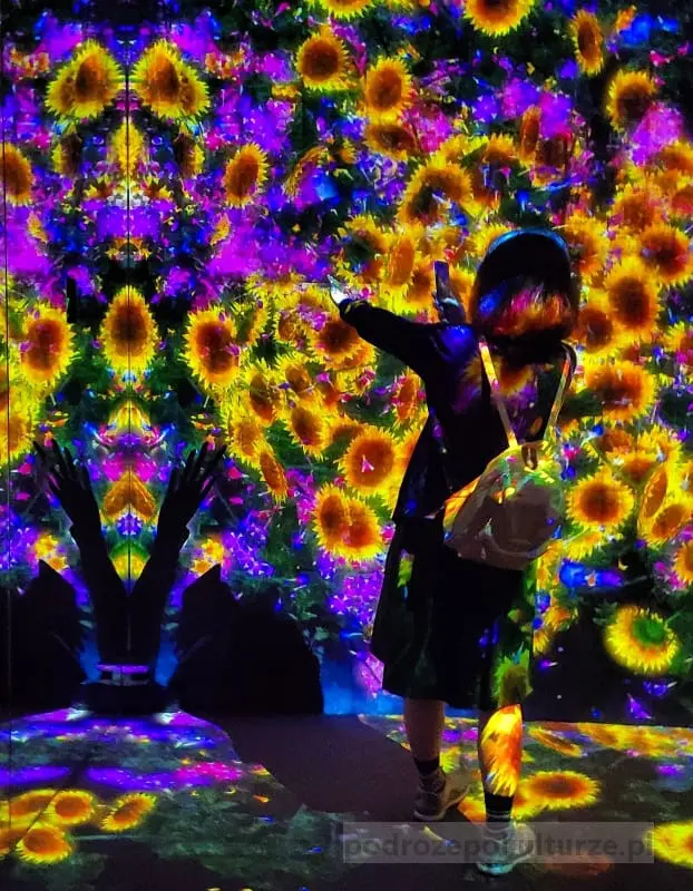 Bilety do Mori Building Digital Art Museum Epson teamLab Borderless (bo taka jest pełna nazwa tego przybytku) trzeba kupić z wyprzedzeniem. Na przykład tutaj (pro tip: będzie trochę taniej niż na stronie muzeum!). Trzeba też przygotować się na zwiedzanie w tłoku. Na zwiedzanie zarezerwuj sobie minimum 2,5 godziny. Ja siedziałam blisko 4 (przypominam, że bez stania w kolejce do Forest of Resonating Lamps). Na miejscu są toalety i automaty z napojami.