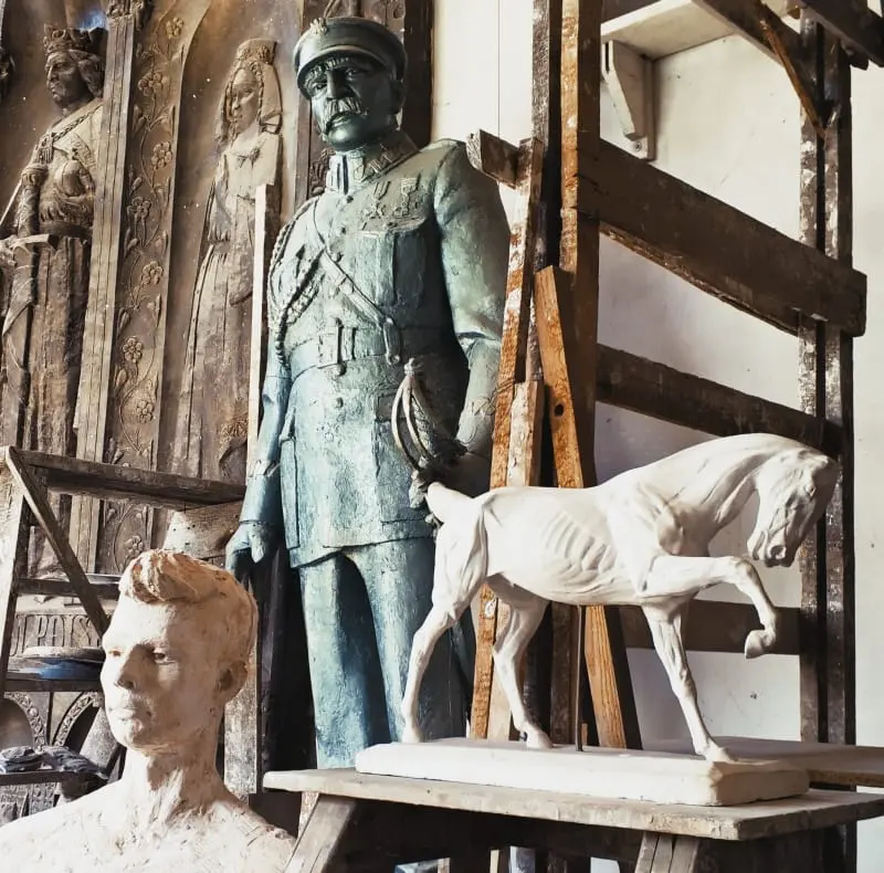 W pracowni (m.in) gipsowy Piłsudski (naturalnej wielkości) i Zamoyski na koniu (w skali 1:5; z takich małych modeli prof. Konieczny przygotowywał formy 1:1, które potem, celem wydobycia z atelier, były cięte na fragmenty i kawałek po kawałku odlewane w hucie).