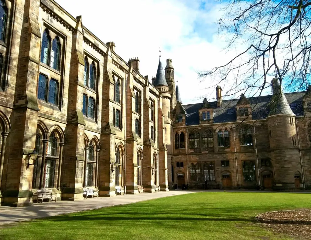 Tak szczęśliwie się składa, że kolejna atrakcja jest rzut beretem z Kelvingrove Art Gallery and Museum. Mowa o kampusie jednej z najstarszych anglosaskich uczelni – Uniwersytetu w Glasgow. Według mnie to najpiękniejsze i najbardziej klimatyczne miejsce w Glasgow.