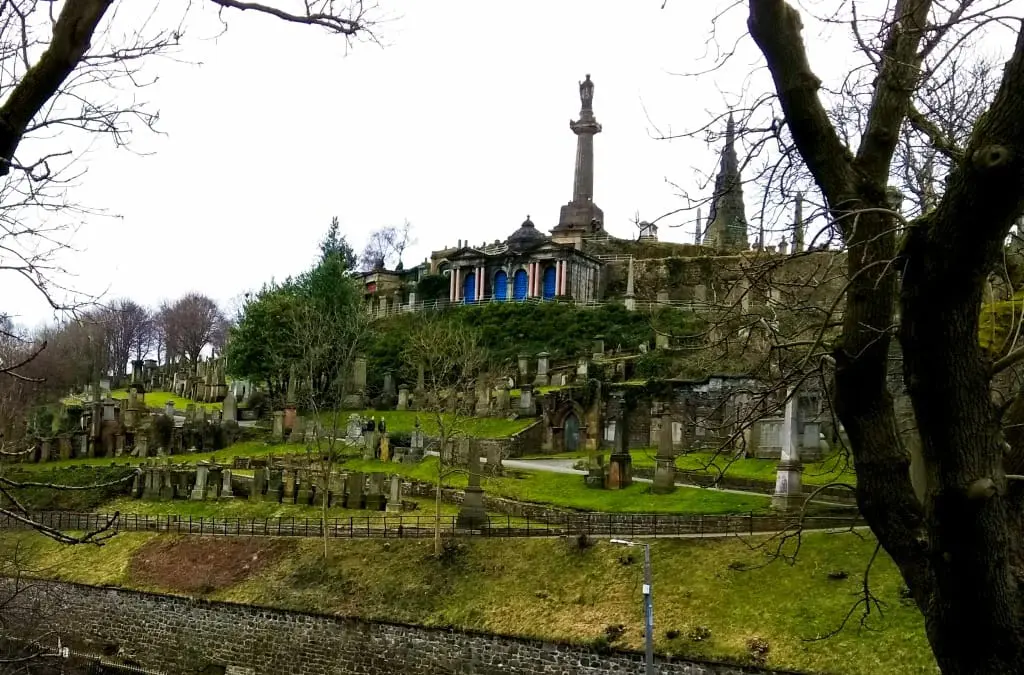 Za to nie odmówiłam sobie krótkiego spaceru po Glasgow Necropolis. Nazwa nie jest przesadzona – wzorowany na paryskim Père Lachaise cmentarz to prawdziwe miasto zmarłych. We wzgórzu spoczywa ponad 50 tysięcy dusz. A okazałe pomniki i pyszne mauzolea wiktoriańskiej śmietanki towarzyskiej kontrastują z anonimowymi mogiłami zwykłych śmiertelników.