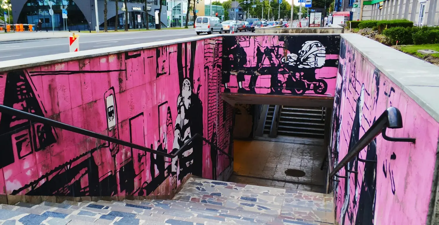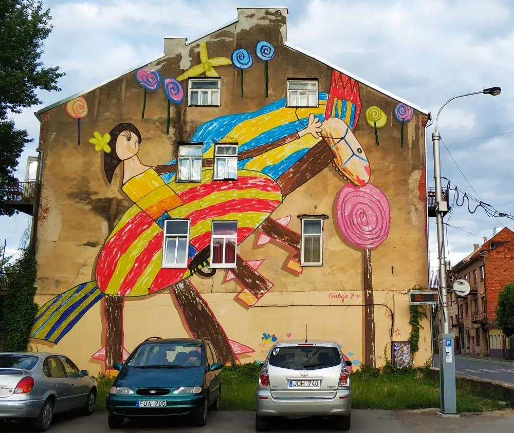 To przypadek Kowna, w którym murale są wszędzie! Część powstała w ramach festiwalu street artu NYKOKA (Kauno gatvės meno festivalis).