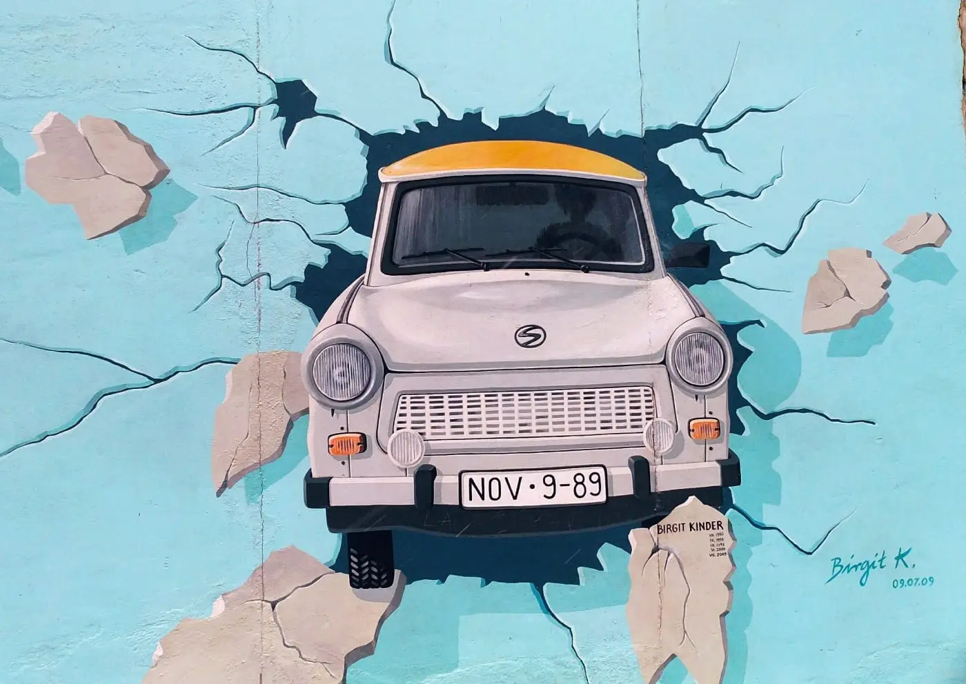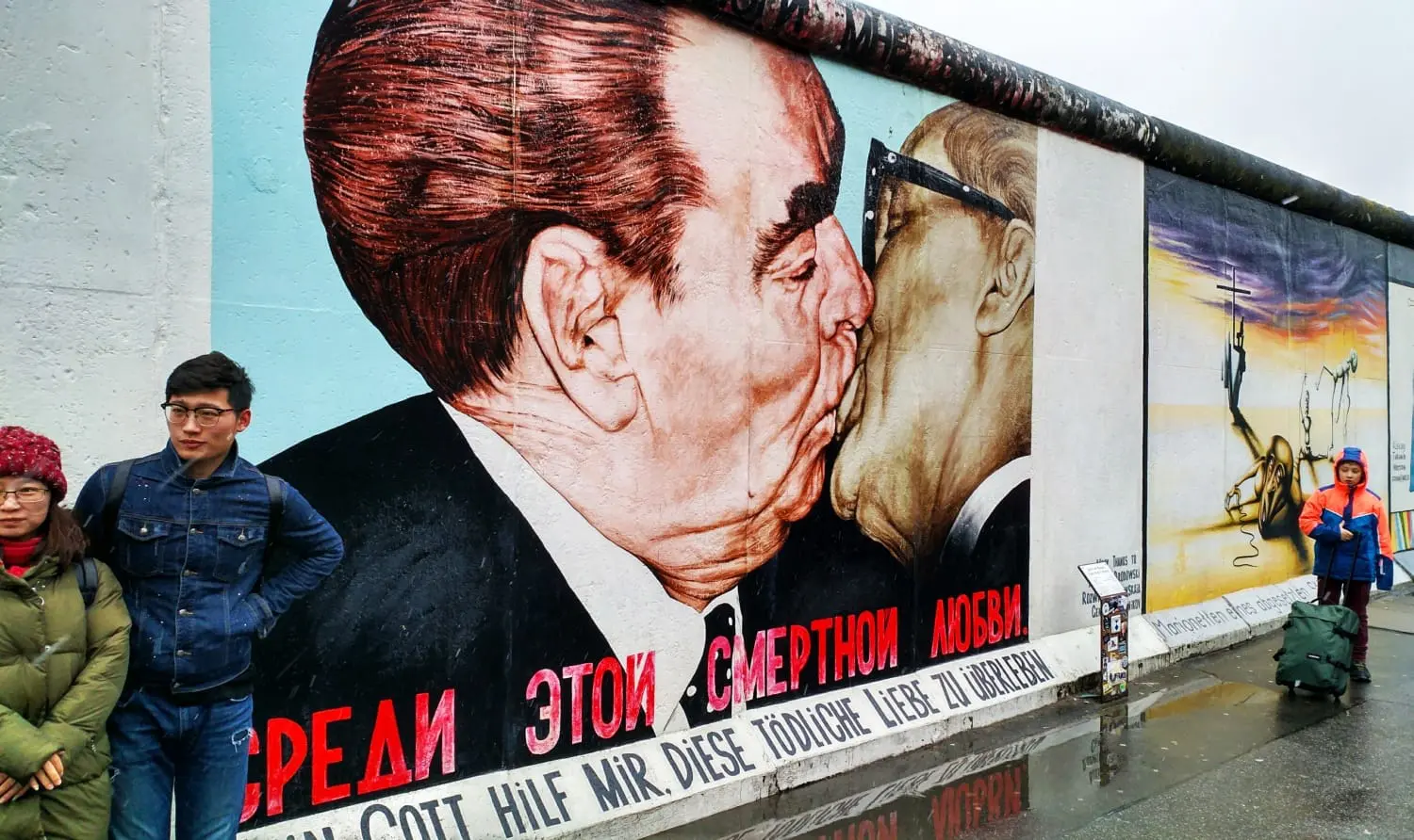 To tu znajdziecie kultowe berlińskie obrazki z trabantem przebijający mur Birgit Kinders i braterskim pocałunkiem Breżniewa i Honeckera, którego autorem jest Dimitri Vrubel.