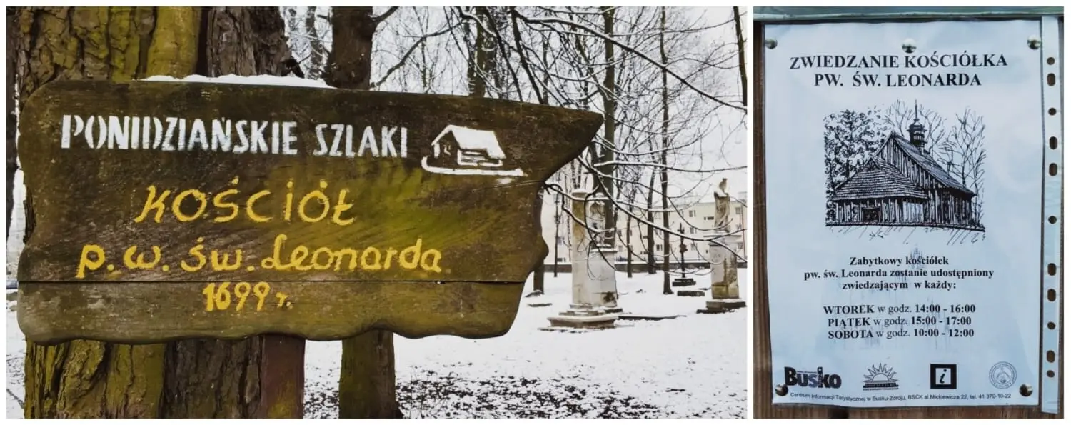 Na koniec drewniany kościół cmentarny św. Leonarda (siedemnasty wiek). We wtorki, piątki i soboty można bezpłatnie zajrzeć do jego wnętrza. Jasne, że byłam w czwartek.