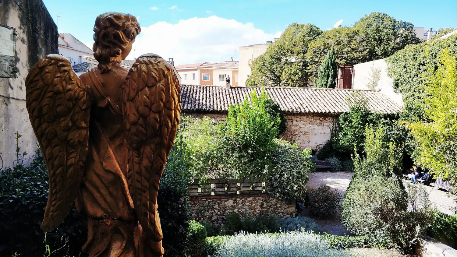 Wejście prowadzi przez kutą furtkę z aniołem. Kolejny anioł pilnuje ogrodu z górnego tarasu. Jardí de l’Àngel w przeszłości był sadem, więc można sobie cupnąć na ławce w cieniu drzewka pomarańczowego.