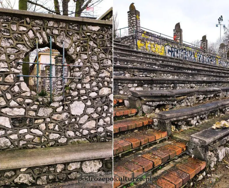 Jeżeli nie jest to najpiękniej położony stadion w Krakowie, to na pewno jest najciekawszy architektoniczny. W dodatku niemal nieznany! Mowa o stadionie Korona na podgórskich Krzemionkach. To przedwojenne boisko zbudowane w całości z lokalnego wapienia (zrewitalizowany kamieniołom jest zresztą poniżej jego, to dzisiejszy park Bednarskiego). Od lat siedemdziesiątych stopniowo popada w wyjątkowo malowniczą ruinę. Jego sypiące się trybuny przypominają antyczny teatr!
