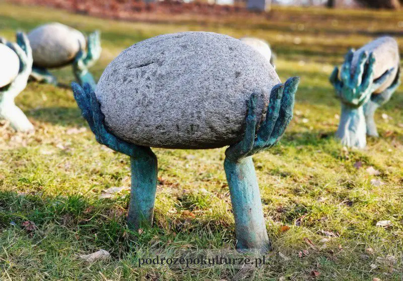 Ale mnie oczywiście najbardziej ujęły mniejsze formy, zwłaszcza te z otoczakami (kamień był ulubionym tworzywem Chromego): wiewiórka, koty, owce. Albo te dłonie wyrastające z trawnika (nie wiem jaki mają oficjalny tytuł, ale ja ochrzciłam je ‘ciężki tydzień’). Więcej o Bronisławie Chromym przeczytacie tutaj.