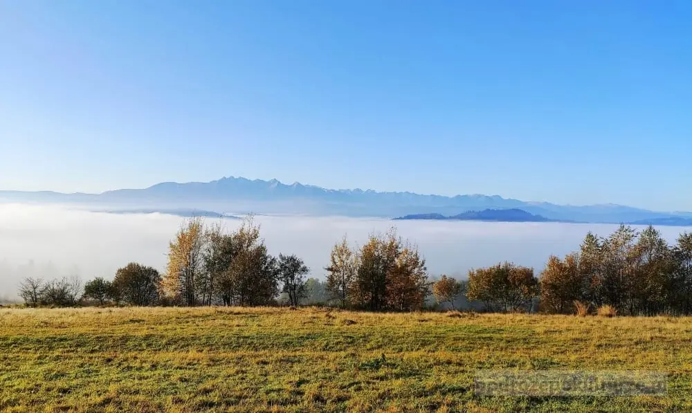 Pogoda była jak złoto i dzień w dzień witał mnie ten sam spektakl z mgły i słońca. Około dziesiątej minut trzydzieści opary znad jeziora czorsztyńskiego rozstępowały się, odsłaniając przeboskie widoki na Tatry. Do tego liście – nomen omen w kolorze złota, intensywnej żółci i cynobru. Dwadzieścia stopni na termometrze oraz słońce właściwie nie chowające się za chmury.