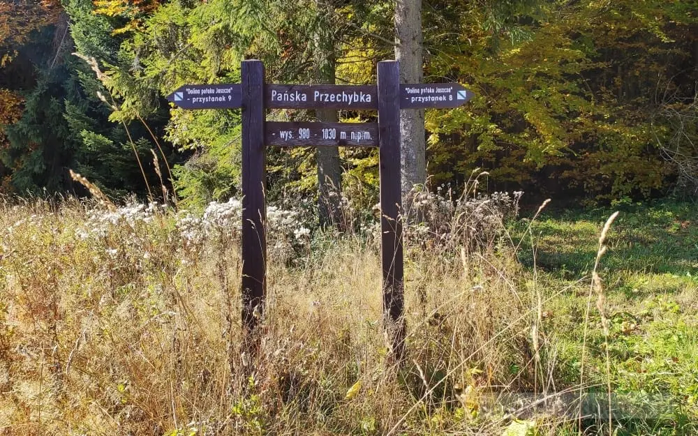 Mniej więcej w połowie drogi wypada przełęcz Pańska Przehybka (Przechybka?), a kawałek pod nią w grudniu 1944 roku rozbił się amerykański bombowiec. Dziewięciu z dziesięciu członków załogi Liberatora wyszło z katastrofy cało. O wydarzeniach przypomina pomnik – kawałek kadłuba. Wygląda bardzo realistycznie, ale to atrapa. Prawdziwe resztki Liberatora można zobaczyć w Ośrodku Kultury w Ochotnicy Górnej na wystawie Lotnicze ślady w Gorcach.