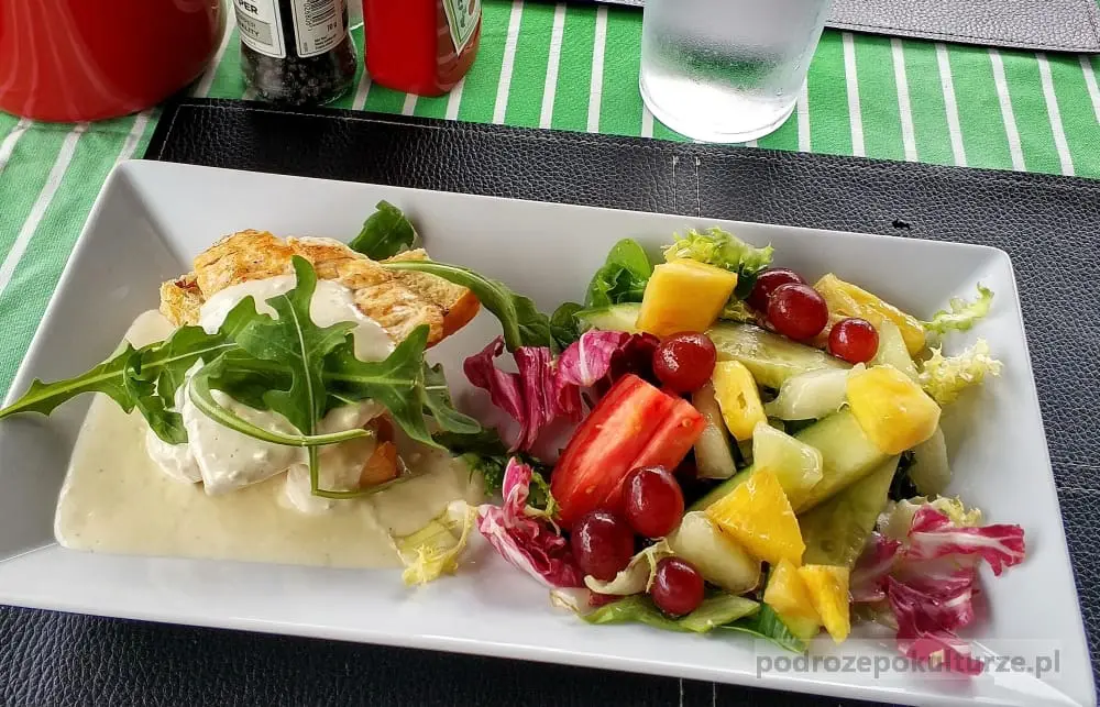 Grill it! Marina, która okazało się restauracją w hotelu Radisson Blu Marina Palace, z fantastyczną obsługą i przyjemnym tarasem. Na Food Walka dostałam wieprzowego burgera – coś w rodzaju maczanki krakowskiej. Bardzo brzydkie, bardzo smaczne.