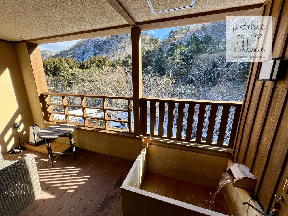 A w 2025 roku wylądowaliśmy w być może najlepszym hotelu, w jakim byłam kiedykolwiek. W Shionoyu Onsen Rengetsu (prefektura Tochigi) spędziliśmy cudownie leniwe dwa dni, w czasie których główną rozrywką były kąpiele w gorących wodach termalnych w prywatnej wannie na balkonie z widokiem na ośnieżone góry. Napełniają się gorącą wodą na życzenie. Wystarczyło nacisnąć przycisk i poczekać kwadrans.