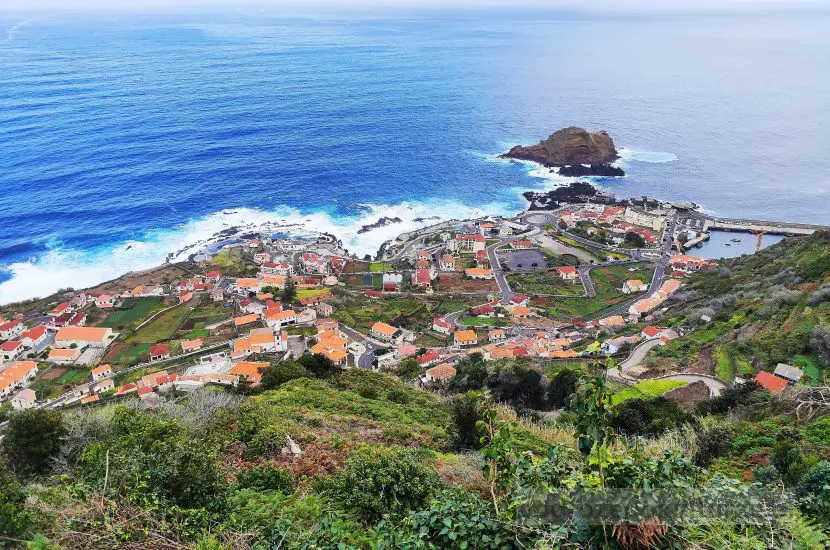 Czwartego dnia zaczęłam wybrzydzać z punktami widokowymi (w głowie się poprzewracało, wiem). Już nie chciałam zatrzymywać się na każdym miradouro. A gdy myślałam, że zasób ochów i achów został wyczerpany, stara poczciwa droga ER101 doprowadziła nas na miradouro da Santa z bajecznym widokiem na Porto Moniz. Wyglądało jak miasteczko ze świata Simów.