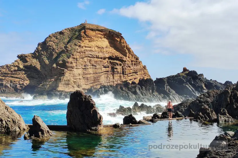 Pół godziny (i pięć zakrętów o sto osiemdziesiąt stopni) później spełniłam kolejne podróżnicze marzonko. Jechałam bowiem na Maderę z silnym postanowieniem, że (pardon my french) choćby skały sr*ły wykąpię się w Atlantyku. No i zrobiłam to w Porto Moniz, które słynie z naturalnych basenów – lawowych niecek. Czy w marcu woda w oceanie była zimna? Była, miała około 18 stopni. Ale hej, czy Bałtyk w lipcu nie ma przypadkiem tyle samo?