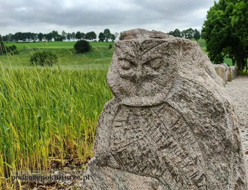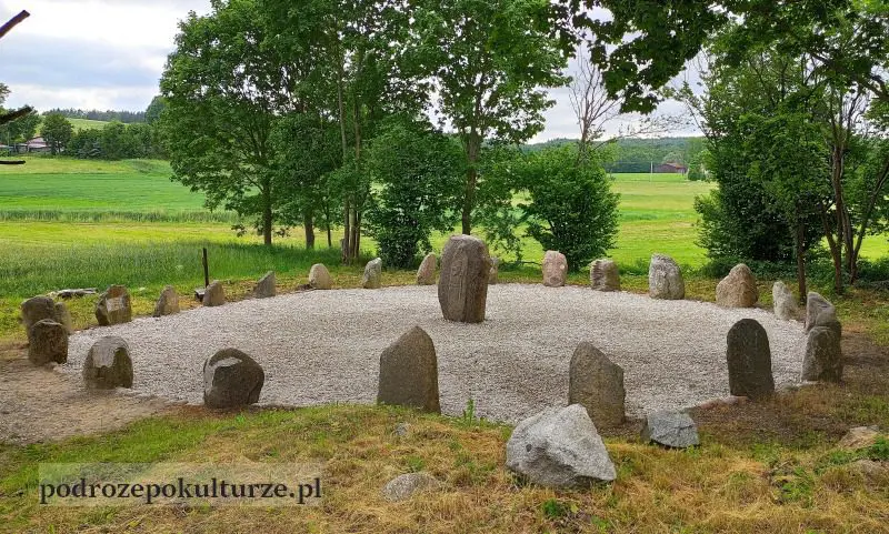 Przestrzeń kręgu to uniwersalne miejsce spotkań duchowych sukcesorów różnych tradycji kulturowych, które funkcjonowały w tej niezwykłej krainie. – można przeczytać na tablicy informacyjnej (nawiasem mówiąc to wspaniałe, że tak dba się tu o przekazywanie wiedzy o dziedzictwie!). Co ciekawe, kamienie w kręgu i przy dróżce są rzeźbami. Dominują zwierzęta, zwłaszcza zające, co nie dziwi, gdy się wie, że sasins po staroprusku oznaczało zająca.