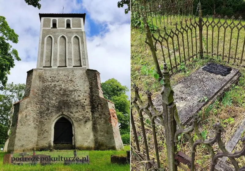 No bo właśnie, kościół wydaje się opuszczony, ale to mylne wrażenie. Jakaś niewidzialna ręka porządkuje teren, kosi trawę, opiekuje się też skromnymi grobami na przykościelnym cmentarzu. Niektóre wykaligrafowane gotykiem inskrypcje wciąż można odczytać. We wnętrzu, do którego wstępu nie ma, podobno można zobaczyć troszkę dawnego wyposażenia. Podobno sklepienie pomalowano na niebiesko.