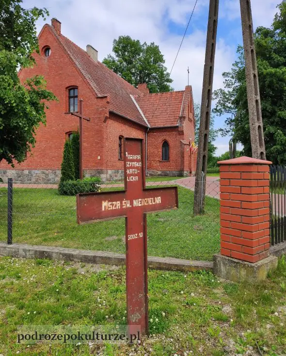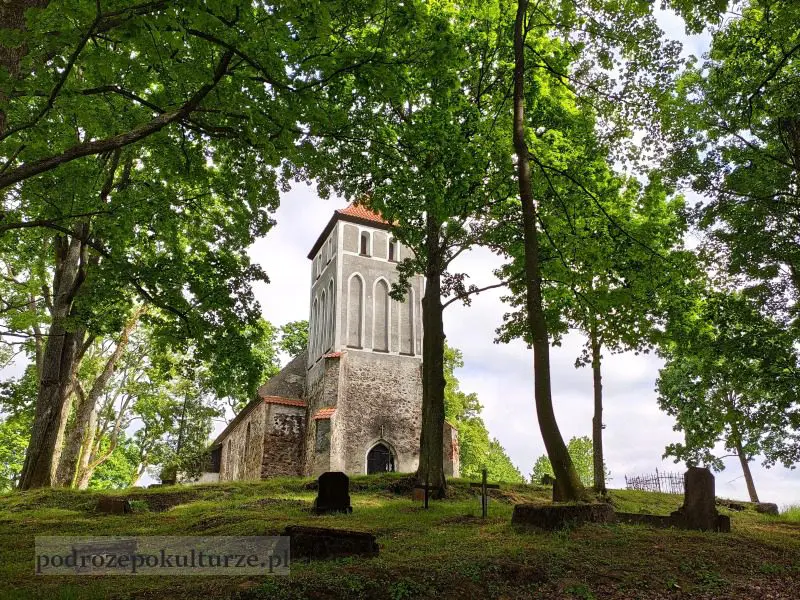 To ten kościół z krzyżackich początków Marienfelde. Czternasty wiek, gotyk, ale nieprzypominający krzyżackich kościołów ziemi chełmińskiej. Tam czerwona cegła, tu kamień polny, do tego otynkowany. Położony na niewielkim pagórku. Otoczony drzewami czerwony dach widać z oddali.