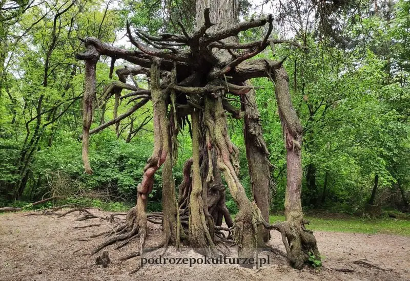 W lesie pod wsią Wełecz rośnie sosna niby pospolita, a jednak niepodobna do żadnej innej. To jedyna znana mi okazja by zajrzeć drzewu pod podwozie. Sosna z Wełecza rośnie (wisi?) bowiem dobre dwa i pół metra powyżej poziomu gruntu, wsparta na ażurowej konstrukcji z korzeni. Faktycznie wygląda jakby rosła na szczudłach, albo gdzieś kroczyła.
