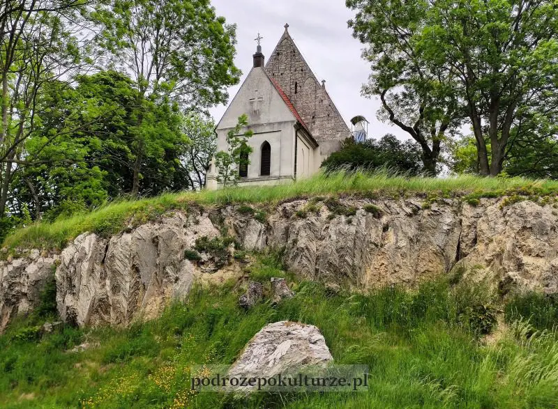 Na czubku gipsowego pagórka od blisko sześciuset lat stoi gotycki kościół św. Bartłomieja z fundacji Jana Długosza. Znaki rozpoznawcze: widoczny z oddali czerwony dach oraz ślady stóp różnych rozmiarów wyryte przy wejściu. Do dziś nie wiadomo na co to i przez kogo.