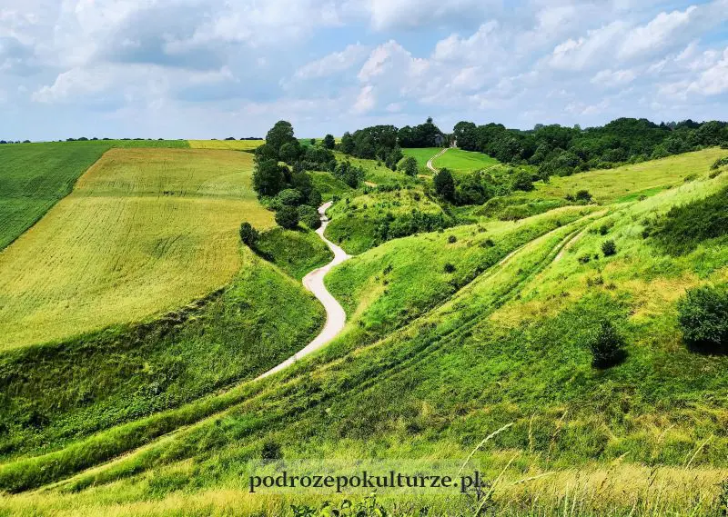 Ale na grodzisko w Stradowie warto wspiąć się z jeszcze jednego powodu: widoki. Raz, że ponidziański krajobraz prezentuje się tu malowniczo. Dwa, że u podnóża grodziska jak żmijka wije się niepozorna dróżka do sioła Kopanina, która z góry okazuje się… albo nie, co ja będę. Zobaczcie sami.