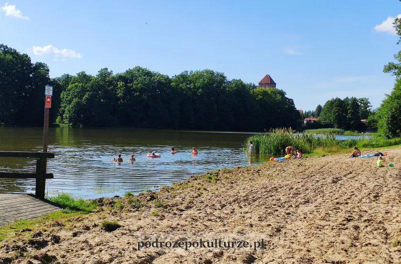 No ale jak się domyślacie nie przyjechałam tu zażywać kąpieli (choć nie powiem, ukłucie żalu było na widok prawie pustej plaży), tylko zwiedzać zamek Przezmark. Nie ma wątpliwości gdzie go szukać, wystającą ponad korony drzew ceglaną wieżę widać z oddali.