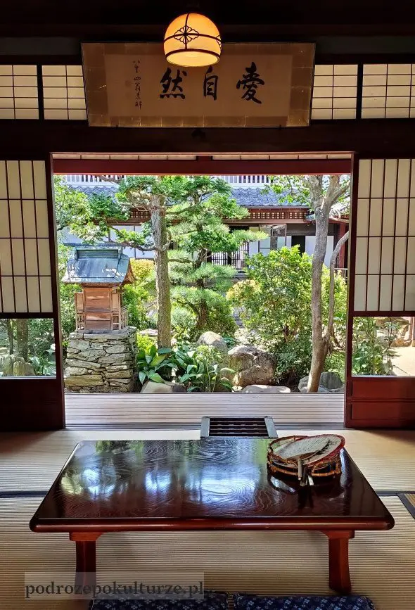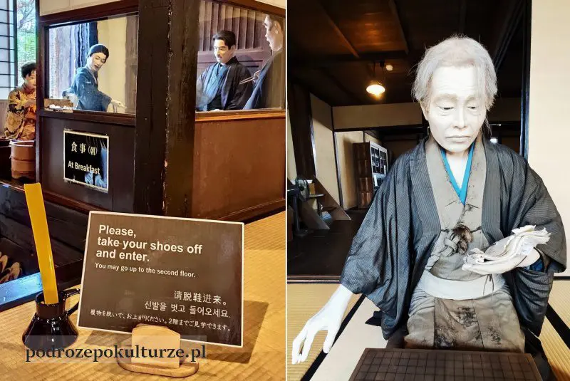 Zwiedzanie zaczyna się od apteki i to jest coś cudnego: staromodny kram z lekami stoi frontem do ulicy Honmachi i każdy przechodzień może go obejrzeć. Bilet potrzebny jest dopiero by zwiedzić resztę muzeum, co rzecz jasna odbywa się na boso. Jak na porządny japoński dom przystało podłogi wyłożone tu są tatami.