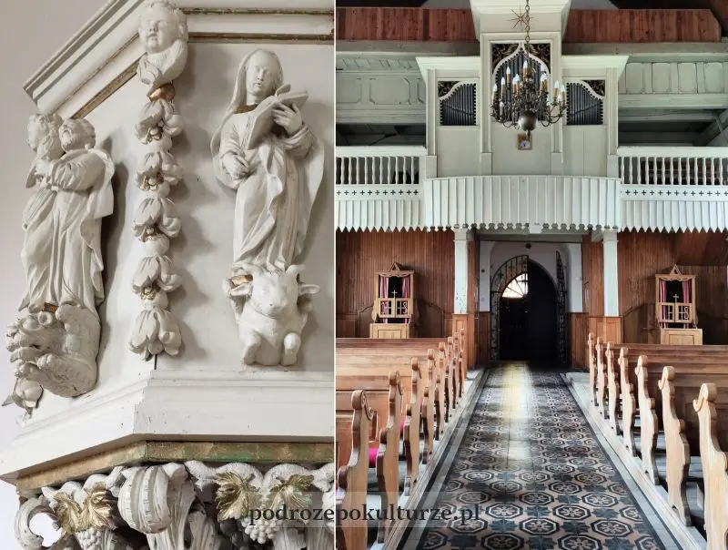 Naciskając klamkę kościoła w Borecznie nie robiłam sobie wielkich nadziei. Tymczasem – o niebiosa! – Sezam otworzył się. Drzwi ustąpiły lekko, a w środku zastałam dwie panie zaaferowane dekorowaniem prezbiterium fioletową materią. Poza tym wnętrze jest jasne i proste, mimo barokowego wyposażenia (ołtarz, konfesjonał i ambona, wszystko białe). Kościół w Borecznie co prawda jest gotycki, ale wraz z rozwiązaniem Państwa Krzyżackiego przeszedł w ręce ewangelików. Ominęła go więc kontrreformacja, a wraz z nią pokrycie złotem wszystkiego co nie uciekało.