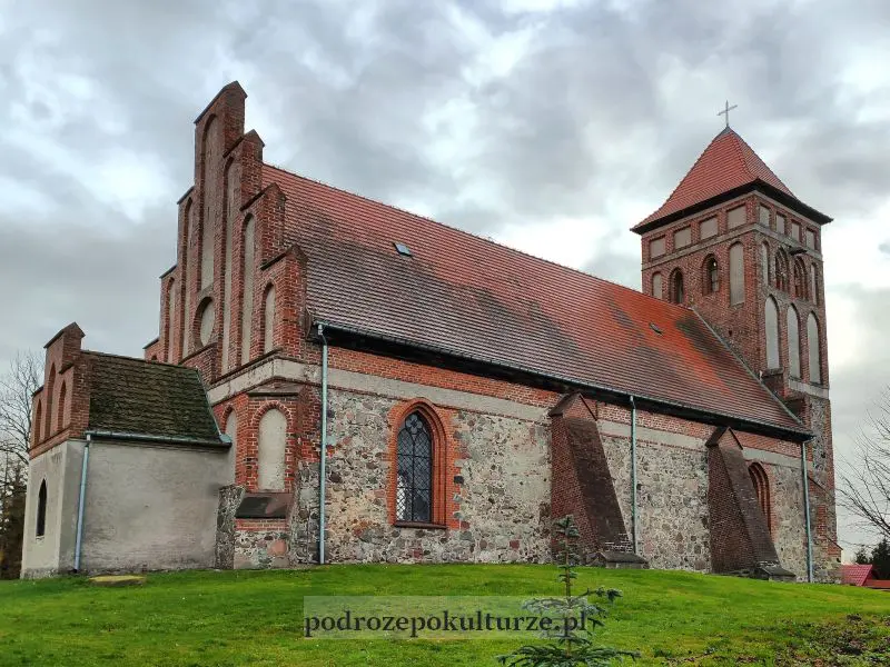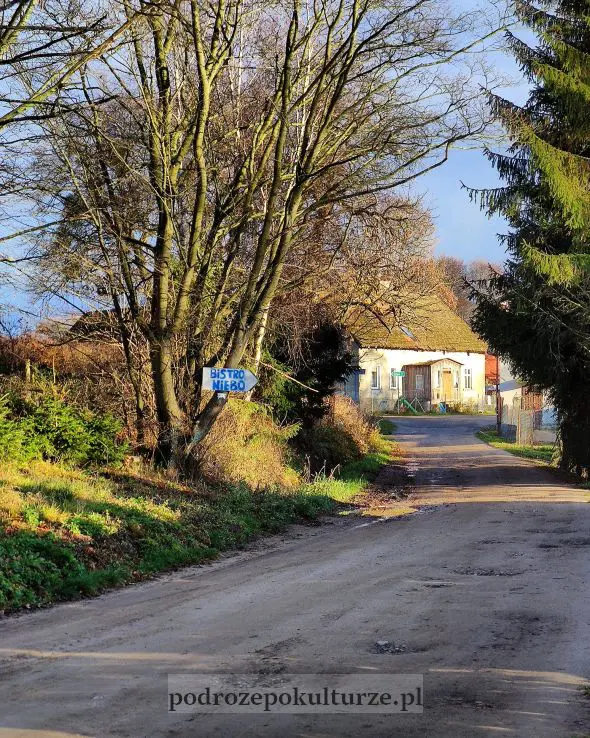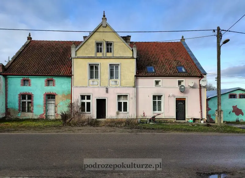 Tuż obok zabytkowa pastorówka (aktualnie plebania) i szkoła z czerwonej cegły wkomponowana w nowoczesny zespół szkół. Wygląda to nawet nieźle. Prócz tego trochę poniemieckich zabudowań gospodarczych i przedziwna kamieniczka, której gospodarze lubią żyć kolorowo.