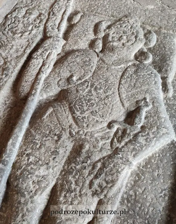 Ale to też fantazja. Epitafium z Boreczna powstało po sekularyzacji Państwa Krzyżackiego, a poza tym poeta Kodrąb to też jakby legenda. Książka Nienackiego to jedyny ślad po nim. Aczkolwiek przyznać trzeba, że kamienny rycerz faktycznie ma jakąś taką wielką łapę. Wiem, bo w końcu go znalazłam, a właściwie na niego wlazłam. Epitafium wmurowano w posadzkę pod amboną. Przedstawiony na nim renesansowy woj to Hans II von Schönaich z rodu właścicieli Boreczna. Ot i cała tajemnica.