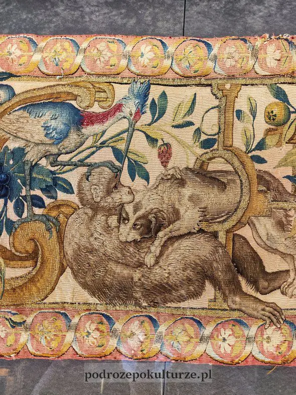 Wszystkie poza tym jednym, który trafił do Rijskmuseum w Amsterdamie. Także te, które nie są pokazywane publicznie. Na przykład werdiurę z rodziną borsuków, która po pobycie w Rosji wróciła dziurawa jak szwajcarski ser. Albo małe tkaniny herbowe rozwieszone nad oknami i drzwiami, czyli w miejscach z myślą, o których je utkano. I te nieszczęsne arrasy z feralnej skrzyni, która zamokła w Rumunii. Wciąż widoczne są na nich uszkodzenia.