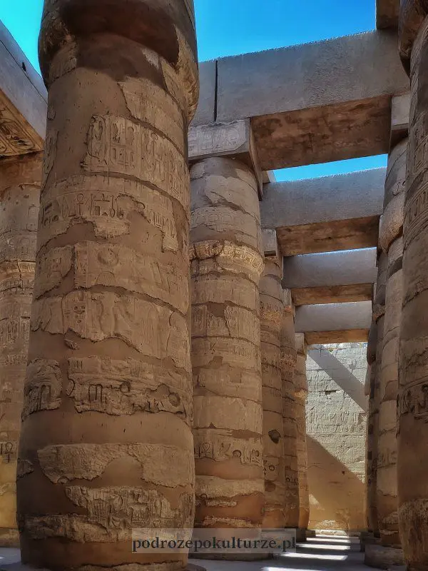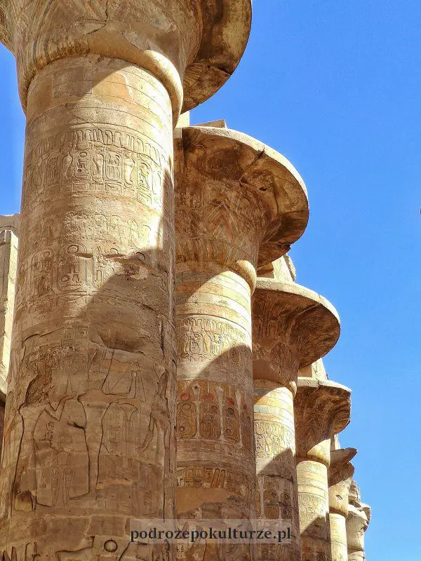 Piorunujące wrażenie robi zwłaszcza sala hypostalowa w świątyni Amona – 134 kolumny wielkie jak baobaby. Najwyższe mają 21 metrów wysokości. Tyle, co pięciopiętrowe bloki. Same podstawy sięgały mi do połowy biodra.