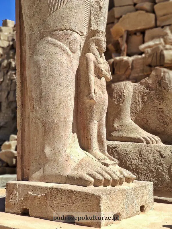 W Karnaku zobaczycie rodzinny portret pary w formie ogromnego posągu. Nefretari sięga Ramzesowi II do kolan. Ale jest przedstawiona od frontu, nie zza goleni, jak zwykło się przedstawiać małżonki faraonów.