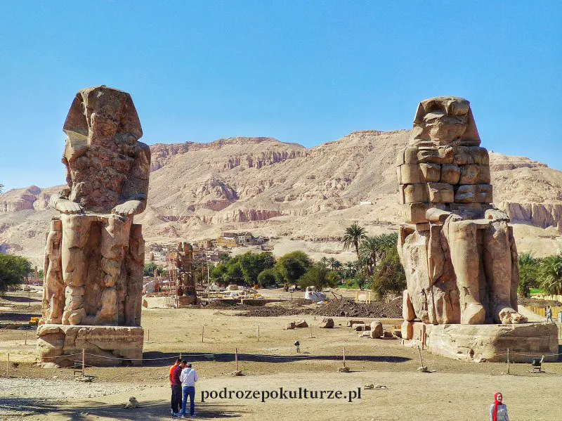 Rzut beretem od Medinet Habu stoją Kolosy Memnona. Dwa ogromne posągi w rzeczywistości przedstawiają Amenhotepa III. Mylną nazwę nadali im Grecy, którzy dźwięki wydawane przez jeden z posągów zinterpretowali jako odgłosy skargi Memnona zabitego w bitwie pod Troją. Ale kolosy już od dawna milczą. Fakt: są ogromne, ale w Egipcie stoją dziesiątki (jeśli nie setki) ogromnych posągów.