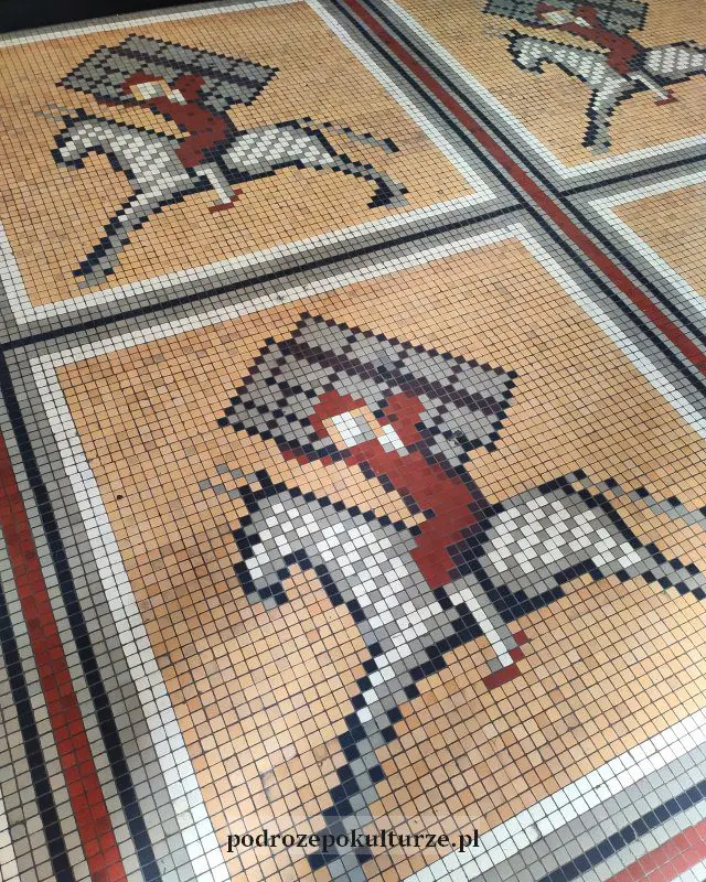 Wreszcie coś o co mozaikiści mogliby się sprzeczać, że to nie jest klasyczna mozaika. Ale ja i tak ją pokażę. To przedwojenna reklama Wedla zaklęta na wieki w podłodze przy Rynku Głównym 41.