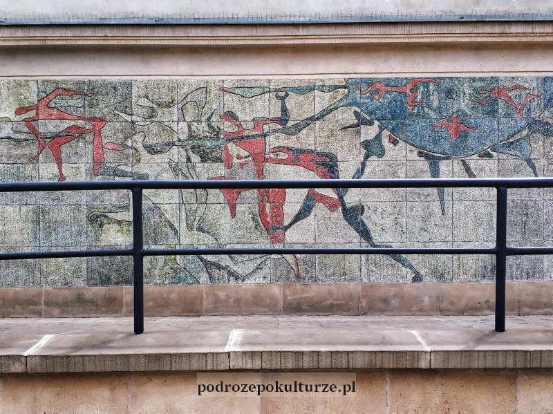 Tyły kina Centrum Kijów przy al. Zygmunta Krasińskiego 34 – mozaika Witolda Cęckiewicza (z tłuczonych talerzy), a wewnątrz cudna dekoracja ceramiczna Krystyny Zgud-Strachockiej.