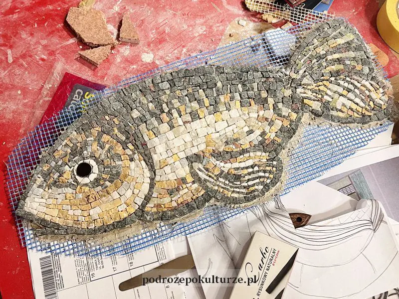 Potem nastał czas ryby. Wszyscy adepci Centro Aletti, nim czegokolwiek dowiedzą się o sztuce tworzenia mozaiki, na rozgrzewkę dostają zadanie: zrób rybę taką, jak ci w duszy gra. A naszemu bohaterowi w duszy zagrał karp. Bo karp to Boże Narodzenie, pasterka i łamanie się opłatkiem.