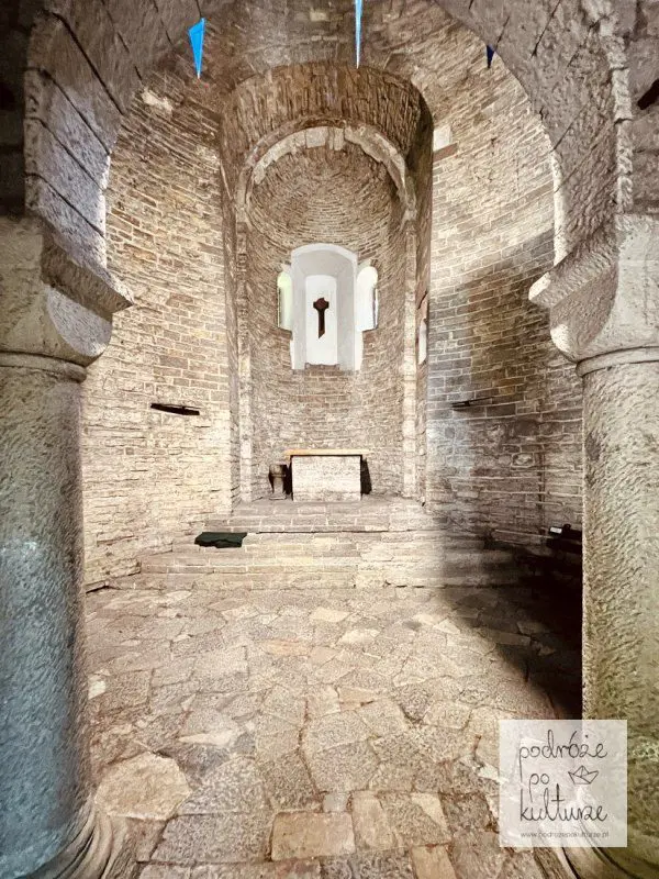 Ergo patrzymy na podręcznikowy przykład romańskiej rotundy. Bez późniejszych naleciałości, dobudówek, poprawek, czy (o zgrozo!) zbarokizowanego wnętrza. Stoi sobie w parku na Górze Zamkowej, jak wrzutka ze średniowiecza w dwudziesty pierwszy wiek.