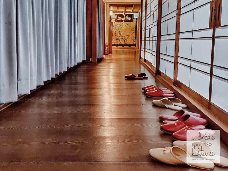 Żeby sprawy skomplikować jeszcze bardziej – po tatami i łaźni śmiga się boso, ale już do WC wchodzi się w jeszcze innych kapciach, które służą tylko i wyłącznie do wizyt w toalecie.