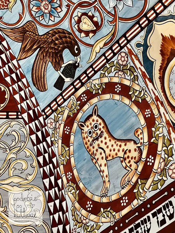 Struś, wiewiórka i inne stworzenia ze sklepienia synagogi w Gwoźdźcu